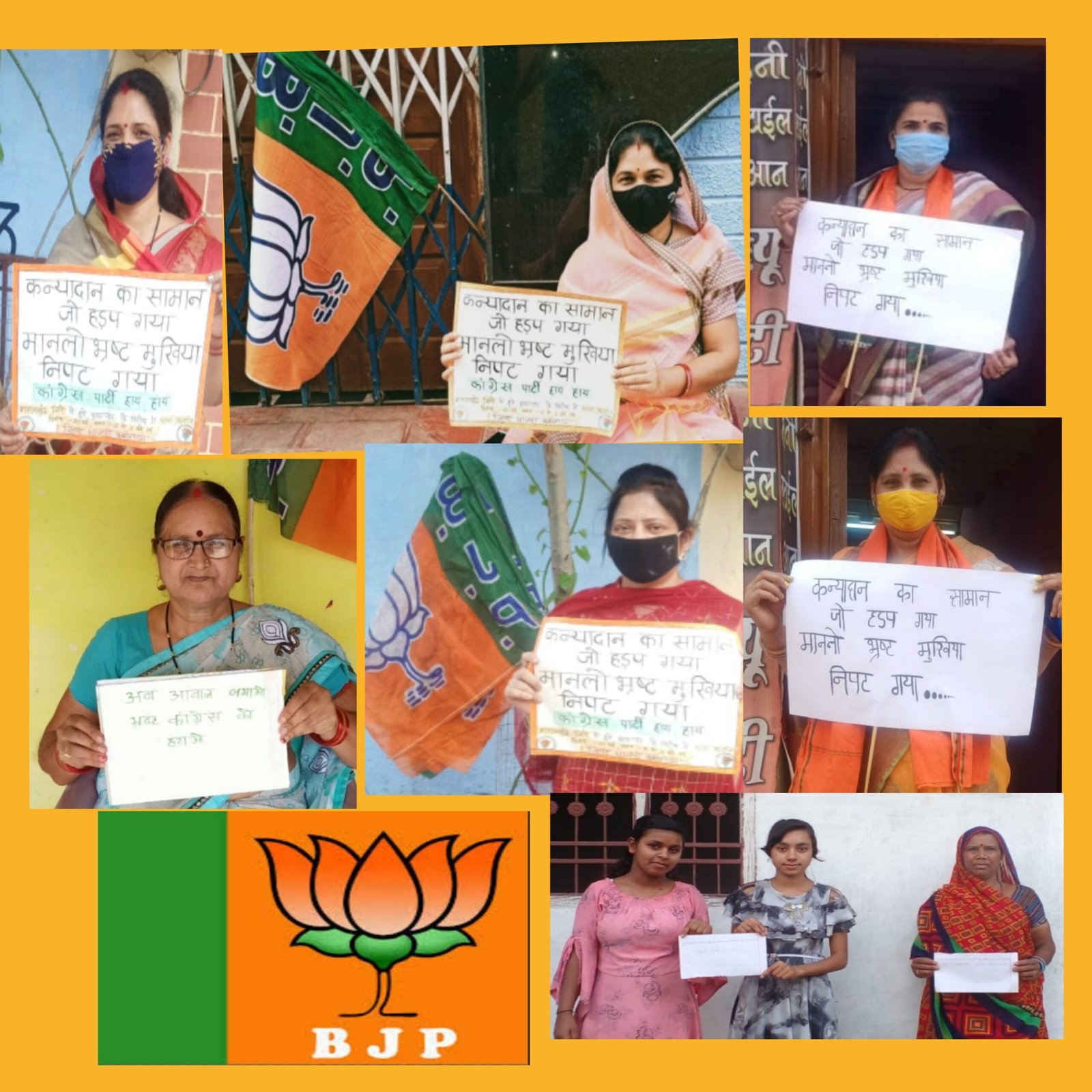 कवर्धा,20 मई 2021/ भारतीय जनता पार्टी महिला मोर्चा द्वारा गुरुवार को प्रदेश भर में जिला स्तरीय धरना प्रदर्शन के तहत मातृशक्ति ने छत्तीसगढ़ राज्य सरकार के खिलाफ घर पर बैठ कर प्रदेश के विभिन्न जिलों में महिला मोर्चा के सभी महिला कार्यकर्ताओं सहित क्षेत्र वासियों ने की धरना प्रदर्शन में अपनी सहभागिता निभाते हुए महिला सुरक्षा व सम्मान या फिर भर्ष्टाचार हो लगातार कांग्रेस की सरकार घोटाला कर भ्र्ष्टाचार में संलिप्त होते ही जा रही हैं इसका आज प्रदेश स्तरीय से लेकर जिला और ब्लाक मुख्यालय एवं बूथ पर राज्य सरकार के खिलाफ धरना प्रदर्शन करते हुए जमकर आक्रोश जताया इस दौरान जिला भाजपा उपाध्यक्ष देव कुमारी चन्द्रवँशी साथ मे महिला मोर्चा के जिलाध्यक्ष मधु तिवारी ,पिंकी पाहुजा,सुसमा चन्द्रवँशी, रति ठाकुर, सविता ठाकुर सभी ने राज्य सरकार के मुख्यमंत्री भूपेश बघेल पर जमकर हमला बोला प्रदेश में कांग्रेस सरकार आने के बाद से महिलाओं और बेटियों पर अत्याचार दिनों दिन बढ़ते जा रहा है लेकिन राज्य सरकार और पुलिस प्रशासन की लचर व्यवस्था के चलते महिला सुरक्षित महसूस नहीं कर रही है आज प्रदेश में जिस प्रकार से महिलाओं के साथ दुष्कर्म और असामाजिक तत्वों द्वारा किए जा रहे अत्याचार की घटनाएं सामने आ रही है । उसी क्रम में भ्र्ष्टाचार बढ़ते क्रम में है हाल ही में महासमुन्द जिले का मामला सामने आया है 30 लाख का घोटाला किया है ऐसे कई घोटाले की कांग्रेस की सरकार कर रही हैं इसी मुद्दे पर महिला बाल विकास के अधिकारी अनसन पर सरकार के खिलाफ भ्रष्टाचार चार को लेकर बैठे थे जिसका विरोध महिलाओं ने मुख्यमंत्री भूपेश बघेल के खिलाफ तख्ती रख कर विरोध जताया।