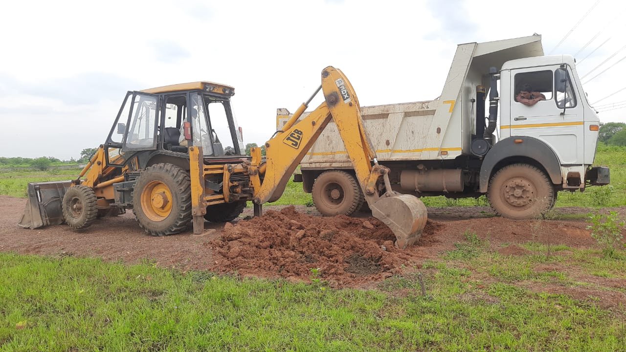 अवैध प्लाटिंग पर की गई कार्रवाई, 2 एकड़ के प्लॉट में मार्ग संरचना को किया गया ध्वस्त