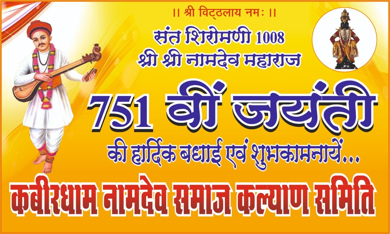 कबीरधाम| जिले में कबीरधाम नामदेव समाज (पंजीकृत) द्वारा संत नामदेव जी की 751 वी जयंती बडी धूमधाम