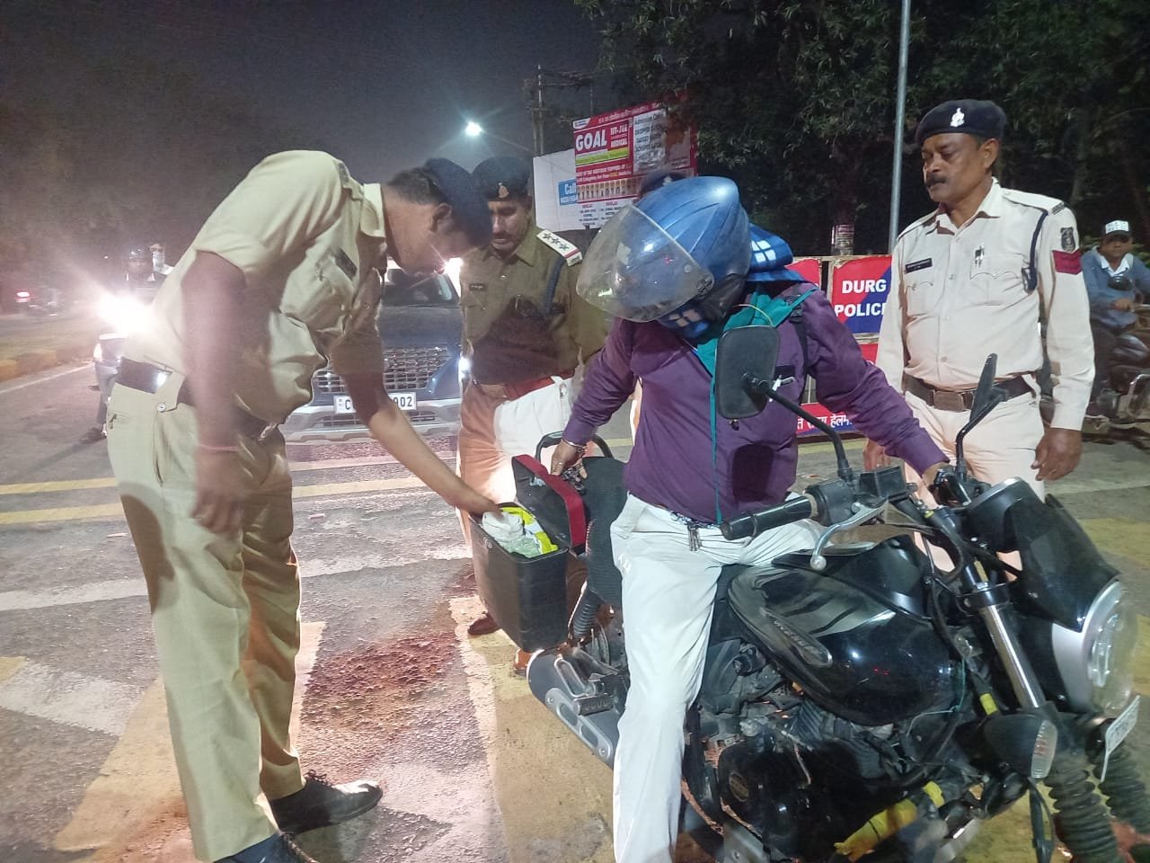 जिसमें थाना दुर्ग में जेल तिराहा, महाराजा चौक, पटेल चौक, थाना मोहन नगर में बाफना टोल प्लाजा, धमधा नाका, अंजोरा बाईपास, जेवरा सिरसा बस स्टैंड, पुलगांव तिराहा छावनी थाना में रामलू चौक, सी एस पी कार्यालय के सामने, कुम्हारी में अहिवारा मार्ग, टोल प्लाजा, जामुल में बोगदा पुलिया, छावनी चौक, पुरानी भिलाई में भिलाई 3 के.सी बघेल कॉलेज के सामने, नेशनल हाईवे खुर्सीपार में हथखोज पुलिया, थाना के सामने, सुपेला में जुनवानी तिराहा एवं कोहका चौक, गुरुद्वारा चौक, वैशाली नगर में आजाद चौक रामनगर, थाना के सामने, भिलाई नगर में डीपीएस चौक, बेरोजगार चौक, भिलाई भट्टी में मुर्गा चौक, बोरिया गेट के सामने, नेवई में नेवई थाना के सामने, कृष्णा टॉकीज तिराहा, थाना के सामने, थाना उतई में उतई थाना के सामने, अमलेश्वर में थाना के सामने चेकिंग कि गई।