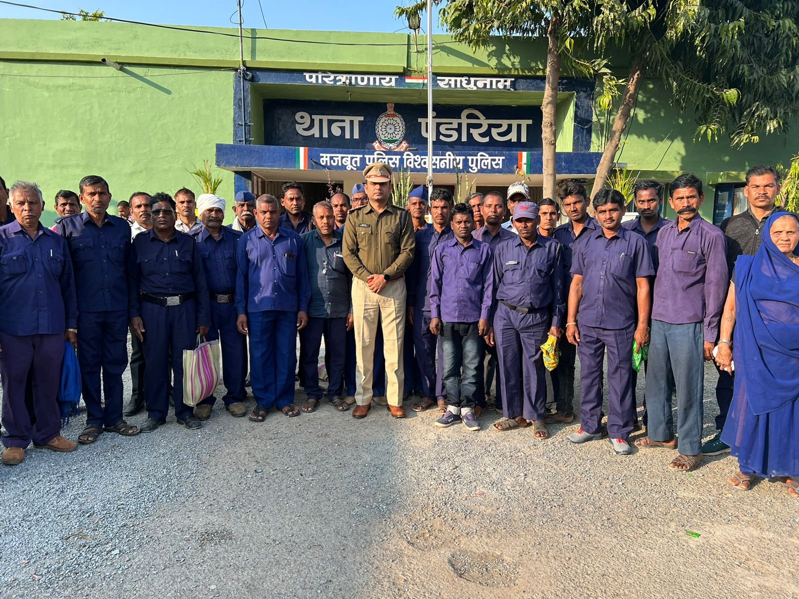 पुलिस अधीक्षक कबीरधाम मोहित गर्ग के निर्देश एंव अतिरिक्त पुलिस अधीक्षक श्रीमती मनीषा ठाकुर रावटे तथा पुलिस अनुविभागीय अधिकारी पण्डरिया नरेन्द्र वेंताल के मार्ग में थाना पण्डरिया क्षेत्रातर्गंत ग्राम कोटवारो का आज दिनांक-02.12.2021 को थाना परिसर पण्डरिया में थाना प्रभारी पण्डरिया निरीक्षक मुकेश यादव द्वारा मिटिंग रखकर प्रत्येक ग्रामो के कोटवारो से बारी-बारी से ग्रामो के बारे में बारीकी से चर्चा करते हुए सामाजिक समरसता को प्रभावित करने वाले कारको की रोकथाम के लिये अजनबी व्यक्तियो, फेरी वालो, गहने चमकाने वाले, वर्तमान समय में गुड़ फैक्ट्री में बाहरी मजदूरो के आगमन/ निर्गमन की सूचना रखकर सूचना से अवगत कराने, सामाजिक बुराईयो, जैसे जुआ, सट्टा, गांजा, शराब जिसमें शांति भंग हाने की संभावनाये बनी रहती है कि रोकथाम हेतू प्रत्येक ग्रामों में जन जागरण चलाने सम्मेलन आयोजित कराने व स्वंय के द्वारा तिथि निर्धारित करने व सूचना आदान प्रदान करने के लिये ग्राम कोटवार/पुलिस कोटवार ग्रुप बनाया गया।
