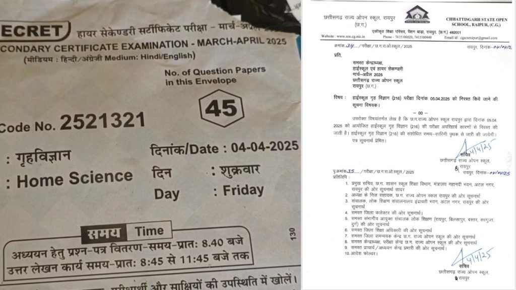 ओपन परीक्षा में बड़ी लापरवाही : एक दिन पहले 10वीं कक्षा का पेपर लीक, गृह विज्ञान विषय की परीक्षा हुई रद्द, नई तारीख की घोषणा