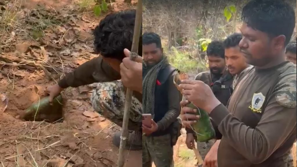 बीजापुर। छत्तीसगढ़ के बीजापुर जिले के कर्रेगुट्टा पहाड़ी में सुरक्षा बल और नक्सलियों के बीच मुठभेड़ लगातार 7वें दिन भी जारी है. नक्सलियों के खिलाफ यह सबसे बड़ा ऑपरेशन चलाया जा रहा है। अभियान में जवानों को लगातार बड़ी सफलता मिल रही है। अब जवानों ने अभियान की गति बढ़ा दी ही। इस ऑपरेशन के दौरान एक वीडियो सोशल मीडिया पर वायरल हो रहा है, जिसमें जवान नक्सलियों के लगाए गए बियर बम को बरामद करते हुए नजर आ रहे हैं।