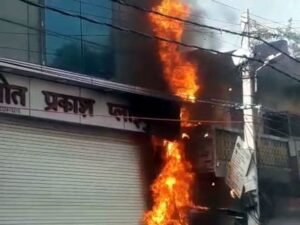 दुर्ग, छत्तीसगढ़ – सुपेला होजरी मार्केट स्थित एक दुकान में आज सुबह अचानक भीषण आग लग गई। आग इतनी तेज थी कि दुकान में रखा चप्पल-जूते का रॉ मटेरियल और अन्य सामान जलकर पूरी तरह खाक हो गया।