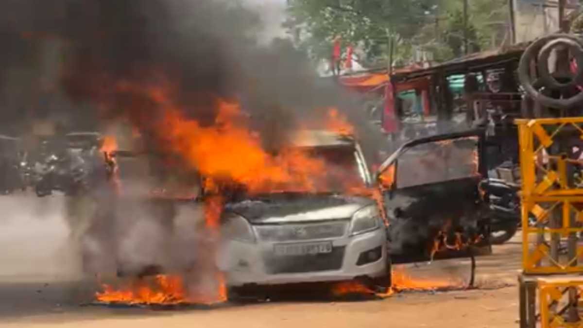 CG: चलती कार में लगी आग, चालक ने कूदकर बचाई जान