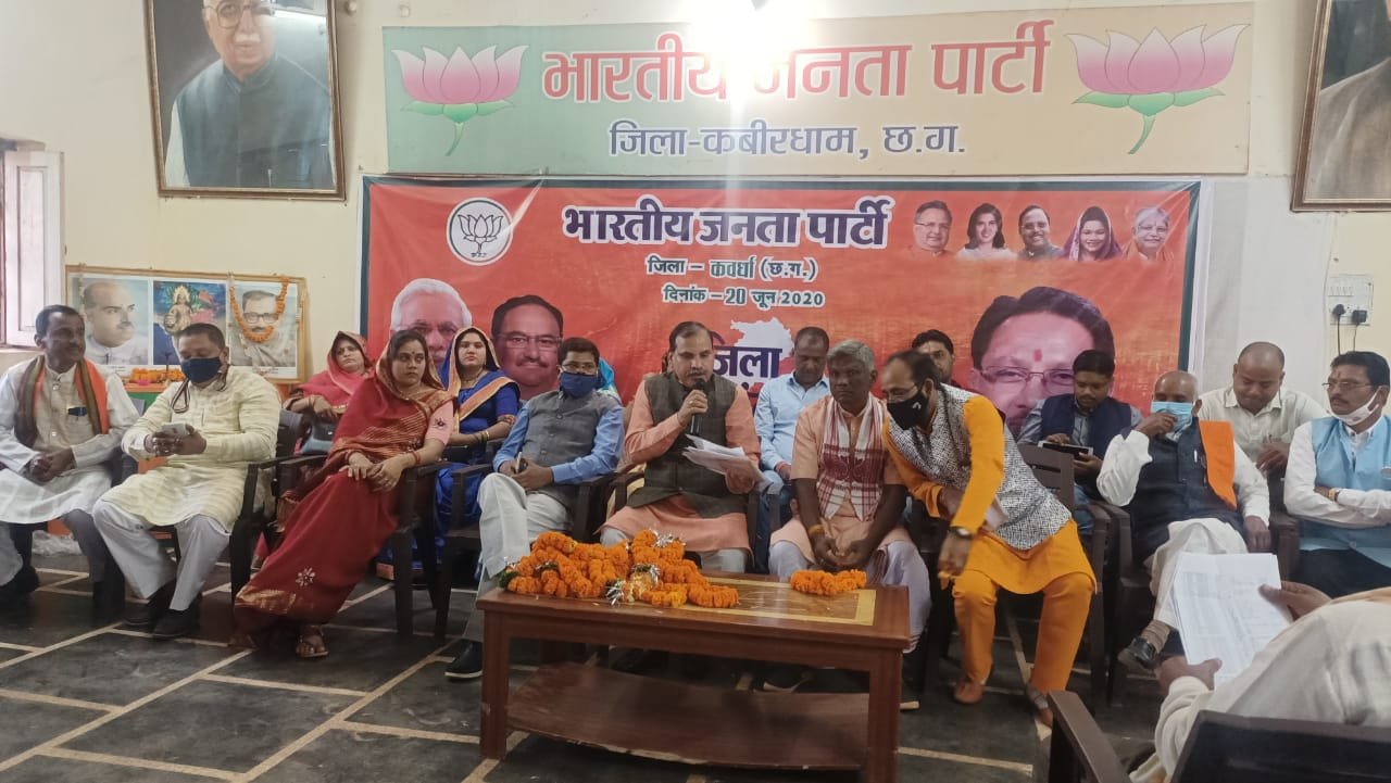 कवर्धा, 7 जनवरी । राज्य सरकार की वादाखिलाफी और धान खरीदी की अव्यवस्था को लेकर आगामी 13 जनवरी को भारतीय जनता पार्टी की विधानसभा स्तरीय प्रदर्शन को लेकर गुरूवार को भाजपा कार्यालय कवर्धा में जिला कार्यकारिणी की बैठक हुई । जिसमें जिले के संगठनप्रभारी व बिलासपुर के पूर्व सांसद लखनलाल साहू, भाजपा जिलाध्यक्ष अनिल सिंह, कवर्धा के पूर्व विधायक अशोक साहू, शिक्षा प्रकोष्ठ के प्रदेश संयोजक विशेषर पटेल विशेष रूप से उपस्थित रहे। बैठक के प्रारंभ में नवगठित जिला कार्यकारिणी के सदस्यों का परिचय भी कराया गया।