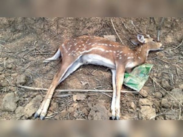 चीतल की मौत:बस्ती में पहुंचा चीतल, बच्चों के शोर मचाने पर छलांग लगाते वक्त तार में फंसा, मौत