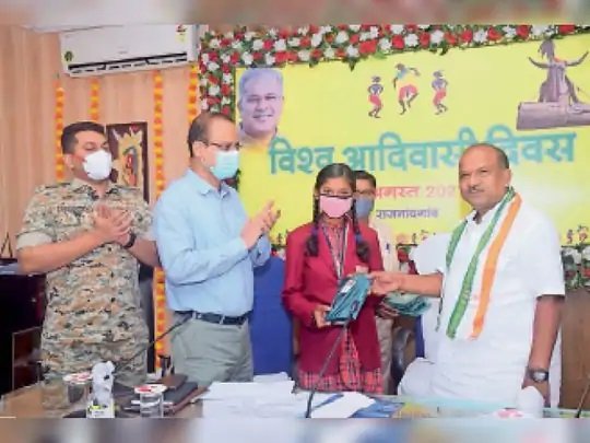 विश्व आदिवासी दिवस पर सोमवार को मुख्यमंत्री भूपेश बघेल अपने निवास कार्यालय से वीडियो कान्फ्रेंसिंग के जरिए विभिन्न जिलों के जनप्रतिनिधियों और विभिन्न योजनाओं के हितग्राहियों से जुड़े। मुख्यमंत्री ने मां दंतेश्वरी और बूढ़ादेव की पूजा-अर्चना कर प्रदेशवासियों को विश्व आदिवासी दिवस की शुभकामनाएं दी। मुख्यमंत्री ने विभिन्न जिलों के हितग्राहियों को व्यक्तिगत वन अधिकार पत्र, सामुदायिक वन अधिकार पत्र एवं वन संसाधन पत्र का वितरण किया। मेधावी छात्रों का सम्मान भी किया गया।