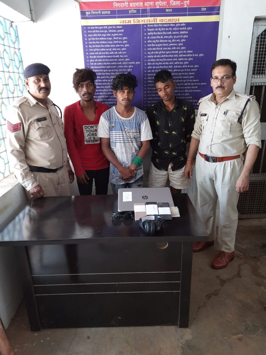15 अगस्त 2021। एसपी प्रशांत अग्रवाल के निर्देश पर एवं अति पुलिस अधीक्षक संजय ध्रुव एवं नगर पुलिस अधीक्षक भिलाई नगर आर के जोशी के मार्गदर्शन में सुपेला पुलिस के द्वारा संपत्ति संबंधी अपराधो मे त्वरित धरपकड़ करते हुए नेहरु नगर वेस्ट के मकान में पीजी में रहने वाले स्टूडेंस के अलग अलग दो मकानो में एक ही रात मे चोरी किये गये एक लेपटाप सहित चार नग मोबाईल की चोरी की गई थी, सूचना मिलने के 24 घंटे के अन्दर ही चोर गिरोह के तीन सदस्यों को पकड़ कर उनसे माल का रिकव्हरी करने में सुपेला पुलिस ने महत्वपूर्ण सफलता हासिल की है। संबंधित मामले में थाना सुपेला के अपराध क्र. 650/2021 धार 457,380 भादवि के प्रार्थी आर्शीवाद खुटिया निवासी 39/6 स्ट्रीट 10 नेहरु नगर वेस्ट के घर गुरुवार-शुक्रवार की दरम्यानी रात को चोरो के द्वारा एक लेपटाप एचपी कंपनी का एवं दो नग कीमत मोबाईल एवं नगदी रकम 6500/- रुपये नेहरु नगर वेस्ट मे चोरी किया गया था। उसी रात को एक अन्य वारदात में अपराध क्र. 651/2021 धारा 457,380 भादवि के प्रार्थिया तेजस्वी चौधरी निवासी नेहरु नगर वेस्ट स्ट्रीट 11 के घर से तीन नग कीमत मोबाईल व नगदी रकम 12,000/- रुपये का चोरी होने की रिपोर्ट पर थाना सुपेला मे शनिवार को दर्ज कराने उपरांत सुपेला पुलिस की टीम के द्वारा त्वरित कार्यवाही कर आरोपी कोमल सोनी, राहुल थापा, दीपक कुमार को चंद घंटो के भीतर ही पकड़ कर चोरी के लेपटाप, तीन नग कीमत मोबाईलो को जुमला कीमत करीबन 1.50,000/- रुपये का मसरुका बरामद कर आरोपियों को गिरफ्तार किया गया है, उक्त मामले में अन्य आरोपी फरार है जिससे चोरी के अन्य मोबाईल व रकम बरामद होने की संभावना है। पकड़े गये आरोपी पुराने शातिर चोर है जिनके के विरुद्ध चोरी के कई प्रकरण दर्ज है। सुपेला पुलिस के द्वारा चोरी के अन्य प्रकरणो मे आरोपियों से पूछताछ की जा रही है।