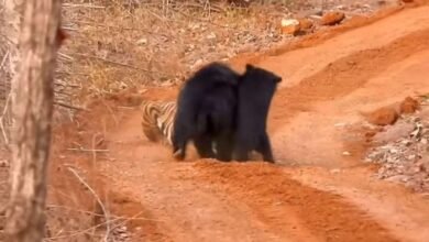बच्चे को बचाने बाघ से भिड़ गई मादा भालू, वन मंत्री ने शेयर किया वीडियो…