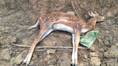चीतल की मौत:बस्ती में पहुंचा चीतल, बच्चों के शोर मचाने पर छलांग लगाते वक्त तार में फंसा, मौत